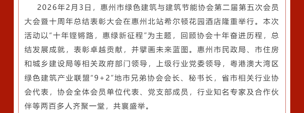 十年铿锵路,惠绿新征程—惠州市绿色建筑与建筑节能协会第二届第五次会员大会暨十周年总结表彰大会圆满举办!